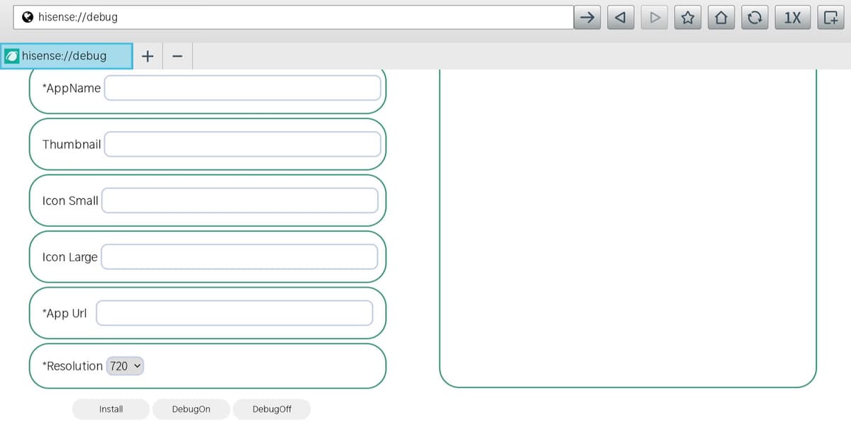 hisense://debugin the address bar - Complete the following fields: